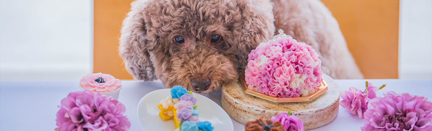 和なはアートフード協会の技術を活かし、ペット用ケーキ・スイーツを開発。グルテン・乳製品・砂糖・塩を使わず、ビーツや紫芋など天然素材で彩り、飼い主様も安心の健康レシピで、可愛い見た目と安全性を追求したペット専用スイーツを学べます。獣医師・岩田昌樹先生の監修のもと、一回で適量が分かるサイズ設計や、安心して与えられる講座内容となっています。資格取得後は習得した技術を使って教室開講・販売が可能です。
